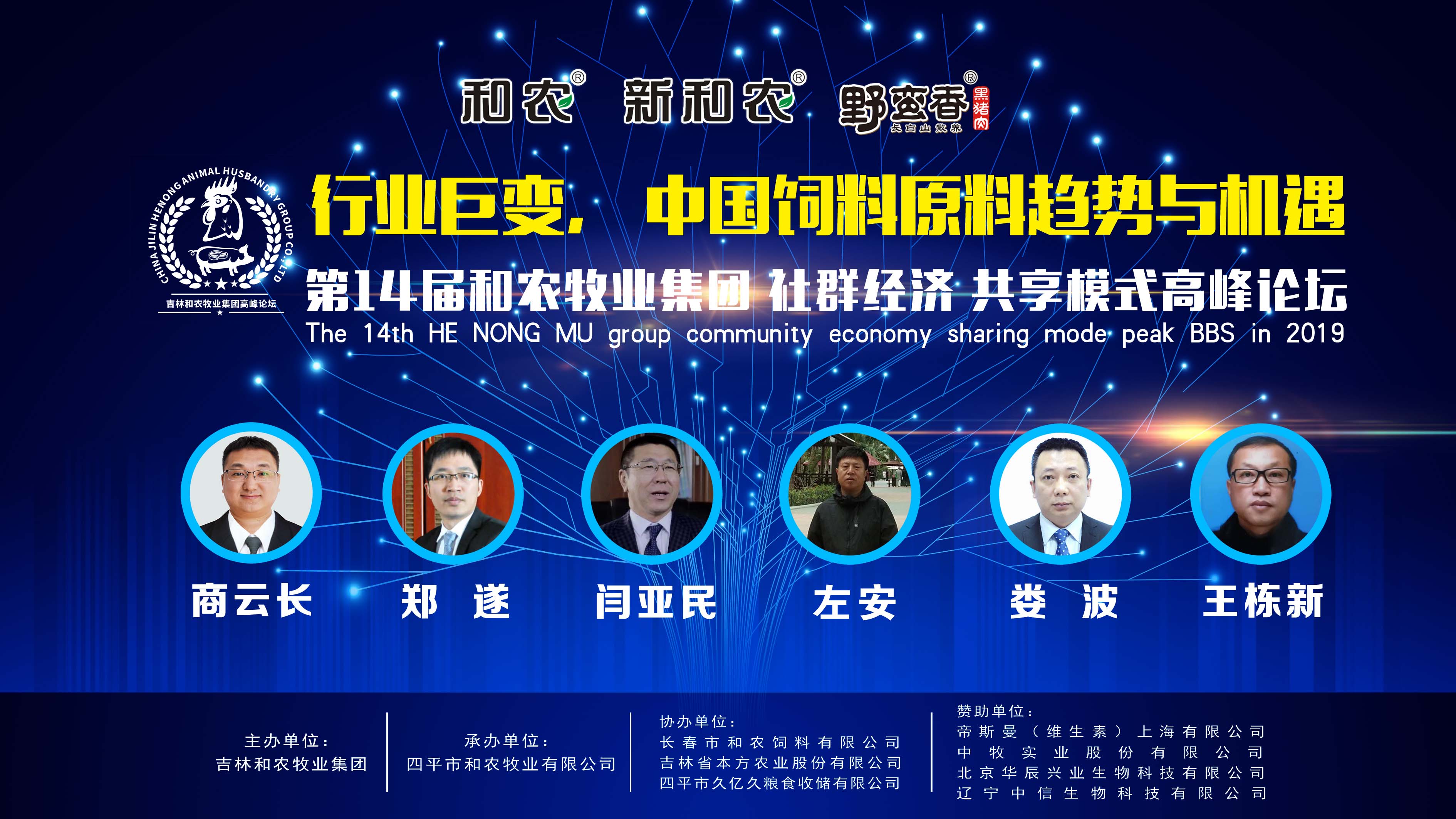 論壇一、行業(yè)巨變 中國(guó)飼料原料趨勢(shì)與機(jī)遇由和農(nóng)牧業(yè)集團(tuán)采購(gòu)總監(jiān)商云長(zhǎng)先生做2019年飼料原料行情分析預(yù)測(cè)引指報(bào)告。出席論壇原料供應(yīng)商代表有:帝斯曼(維生素)上海有限公司大區(qū)經(jīng)理 鄭遂先生;遼寧中信生物科技有限公司董事長(zhǎng)閆亞民先生;四平市南山糧庫(kù)主任左安先生;國(guó)泰君證券股份有限公司長(zhǎng)春分公司總經(jīng)理婁波先生;北京華辰興業(yè)生物科技有限公司大區(qū)經(jīng)理王棟新先生做論壇嘉賓。